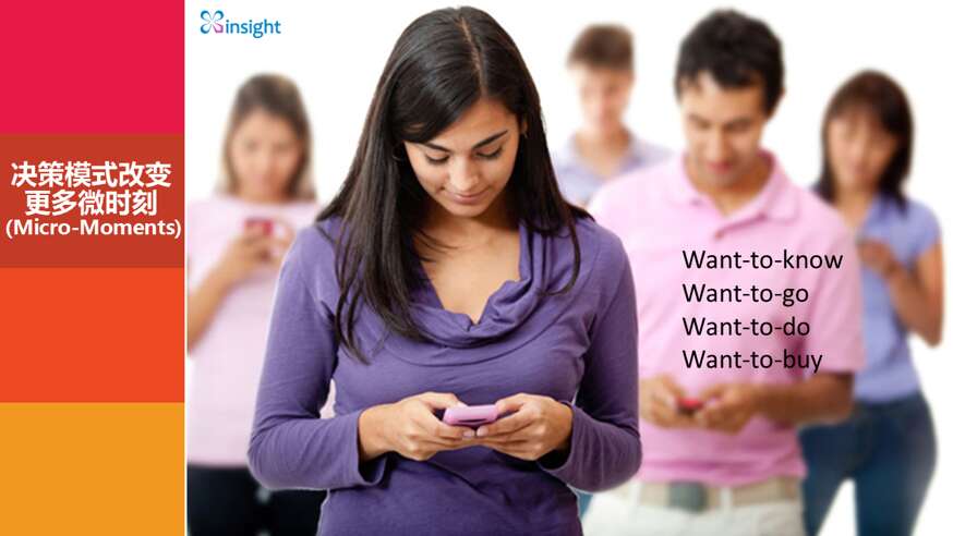 微时刻(Micro-Moment)是谷歌2015年提出的概念,它指的是人们面对想要知道什么、想要做什么、想要去哪里、想要买什么的时刻,反射性的转向智能设备寻求答案的时刻。而最终下定决心、决策的时刻,富含极高的意图,因此对商家来说,若能在这些消费者寻求答案的过程中找到你,让你成为最终解,就变得非常重要。