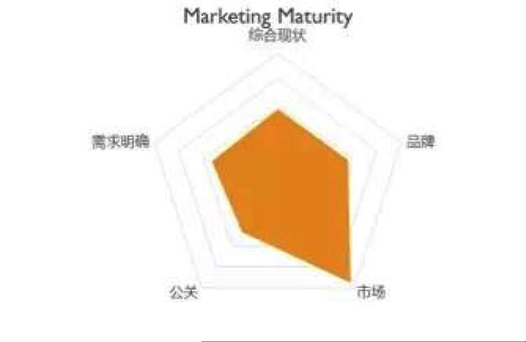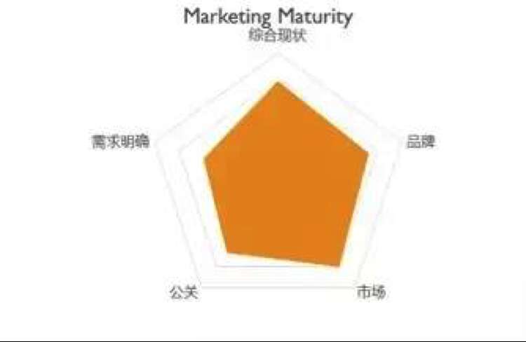 下面是一家智能硬件公司的雷达图,显然他们在市场营销方面比较成熟,但欠缺公关和品牌方面的建设。