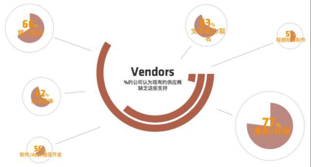 此外,供应商的需求也排在非常靠前的位置。其中漫画(动画)、媒介购买、文案策划是需求量最大的三个方面。