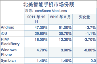 - 缺乏运营商定制渠道。运营商定制机渠道在 3G 时代显得十分重要。而目前全球范围内各大运营商的定制机型依然鲜有 Android 4.0 设备。以北美为例,在三星 Galaxy Note 预装 4.0 系统发售之前 AT&T 长期无法提供任何带有 4.0 系统的合约机,而 Verizon 则在很长时间里只能提供 Galaxy Nexus 一款可靠的 4.0 设备。
