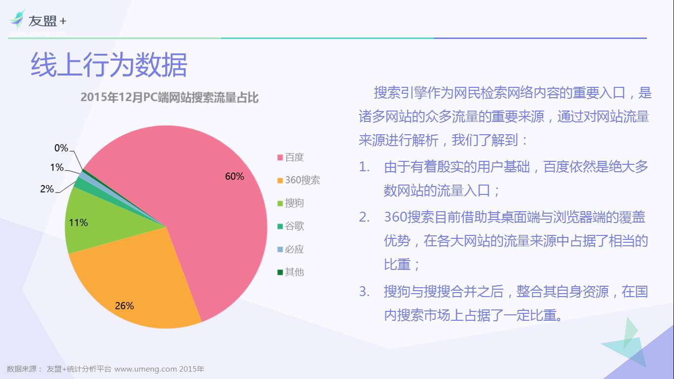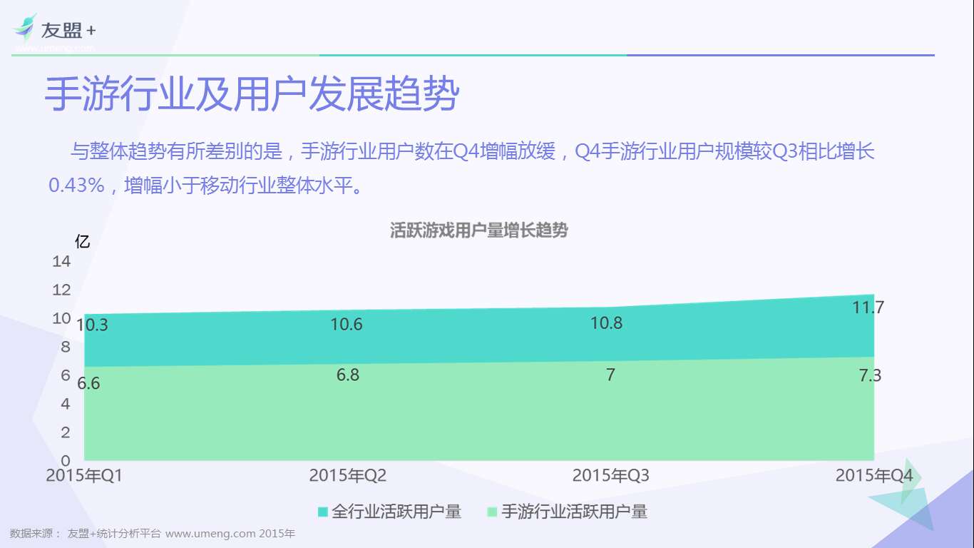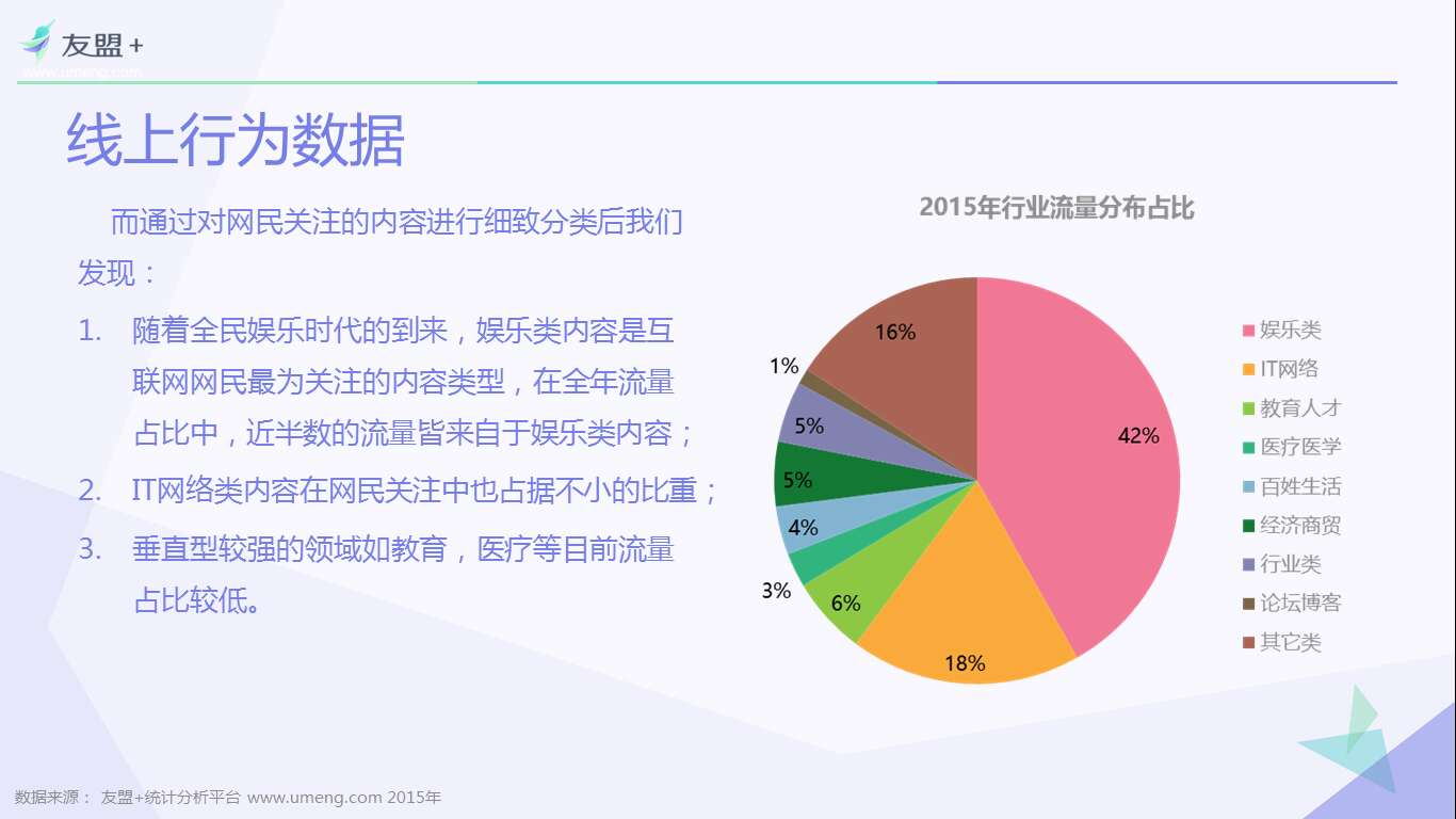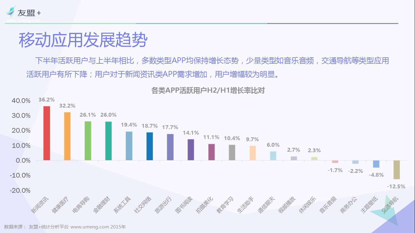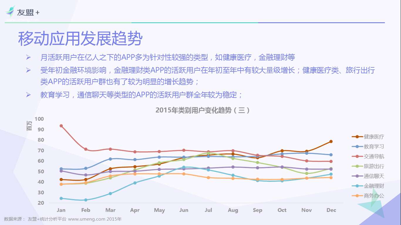 友盟+:2015年全域互联网发展报告 更多阅读:友盟+:2017年全域互联网发展报告友盟+:2016年Q1 O2O移动应用发展报告友盟+:2018上半年移动互联网发展报告“友盟+”猴年春节移动大数据:用户首选棋牌、动作类游戏这家数据公司为什么能成为数百万企业的选择?【友盟+】一周年不忘初心:从整合到融合,从合并到合力友盟+:2015年O2O移动应用趋势盘点(二)—订送餐友盟+:2020年疫期移动互联网行业发展动态分析报告友盟+:2019年Q3移动互联网报告友盟+:2018年1-8月手机行业趋势报告友盟:2015年Q2及Q3中国移动互联网趋势报告友盟:2015年Q1中国移动互联网趋势报告-新型服务在移动端发力友盟指数:一图看尽最新的手机市场格局友盟+ 发布2018世界杯球迷全域数据报告:广州,南宁球迷被大数据授予“最劳模球迷”新零售是什么?从大数据的维度,我们得到一种新答案