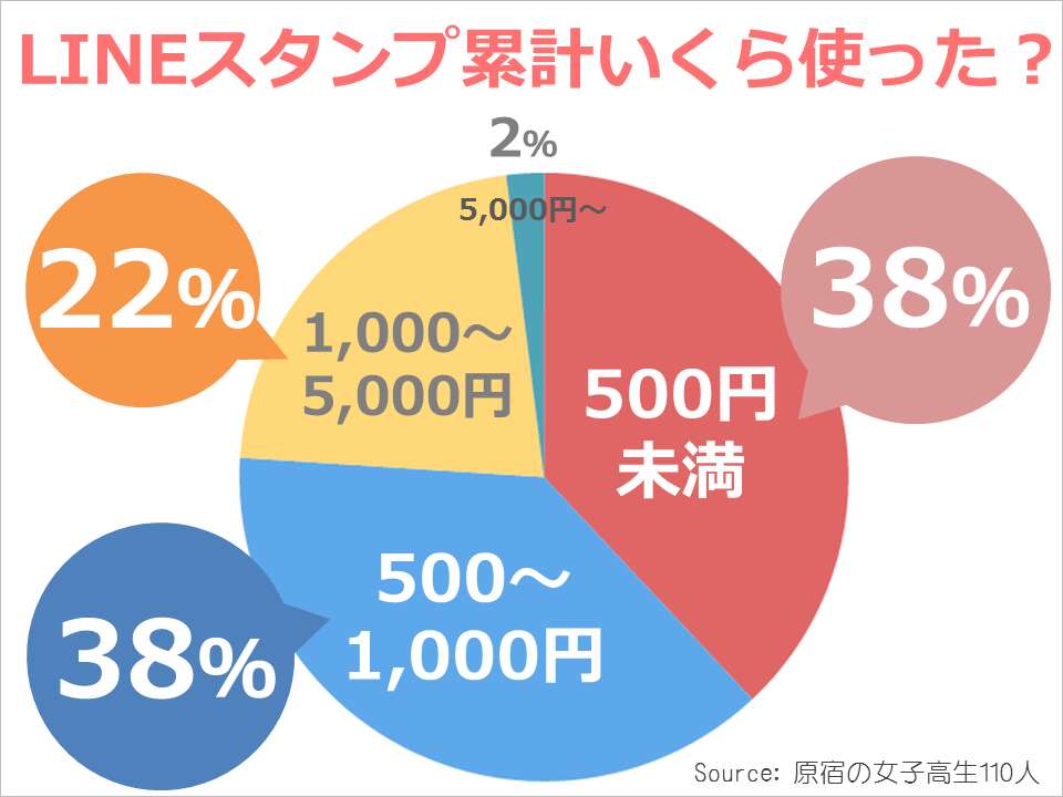 之后的问题是为LINE的贴纸服务支付的多少金额。这里我们可以看到,日本女子高中生的普遍付费额度较低,在付费用户中,38%的用户只用了不到500日元,38%的用户在500~1000日元这个区间,超过5000日元的只有不到2%。