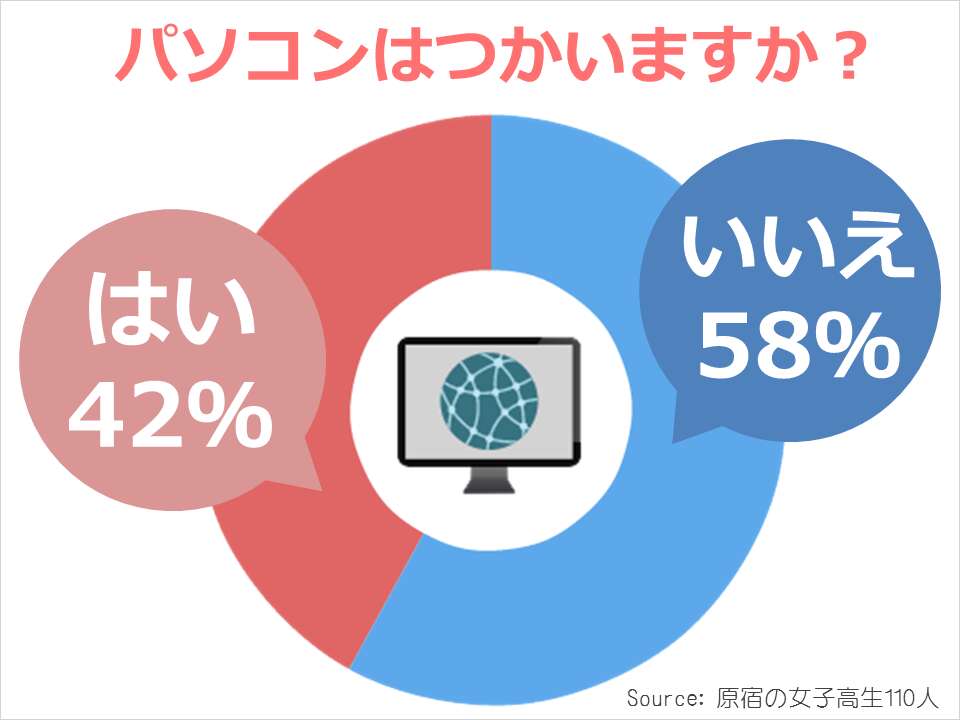 除了智能设备外,本次数据还调查了PC的使用情况。数据显示,只有42%的女高中生会使用PC。换言之也就是有58%的女高中生除了智能设备外,不使用其他设备上网。
