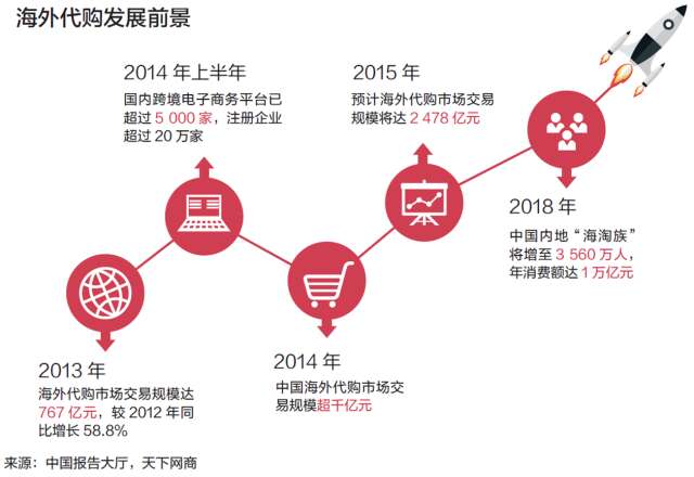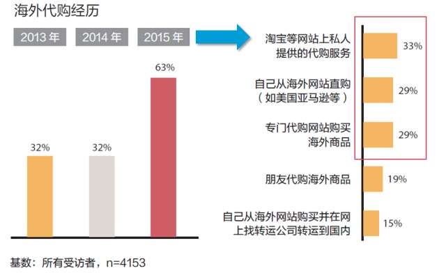 人们对高品质产品需求的增长导致跨境电子商务行业呈现井喷式增长。尼尔森发现,2015年有超过六成的网购消费者拥有海淘经历,而这个数据在2014年仅有32%。以休闲小食为例,线上和线下实体店铺共同有销售的产品只有百分之80%,超过两成的线上销售产品是全新涌现的,其中一大部分是来自海外的产品。2015年1~11月,仅通过跨境电子商务B2C模式,中国消费者就从全球购买了145亿元的“洋货”。中国从“卖全球”正走向“买全球”,消费者从境外自购,到亲友代购、专业代购、海淘,再到跨境电商,海外消费途径越来越多。