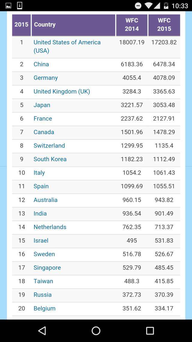 在国家与地区排名之中,美国毫无悬念地排在第一,中国屈居第二,得分差不多只有美国的三分之一,差距仍然十分悬殊。但是也需要看到,纵向比较中国在增长,而美国在下降,双方差距在缩小。德国、英国、和日本名列五强,而中国的台湾地区也排在全球第18名,略微落后于新加坡。值得注意的是,老牌超级大国俄罗斯落在台湾后面,仅排名19。这一点与俄罗斯在全球大学研究影响力排名不佳是一致的。