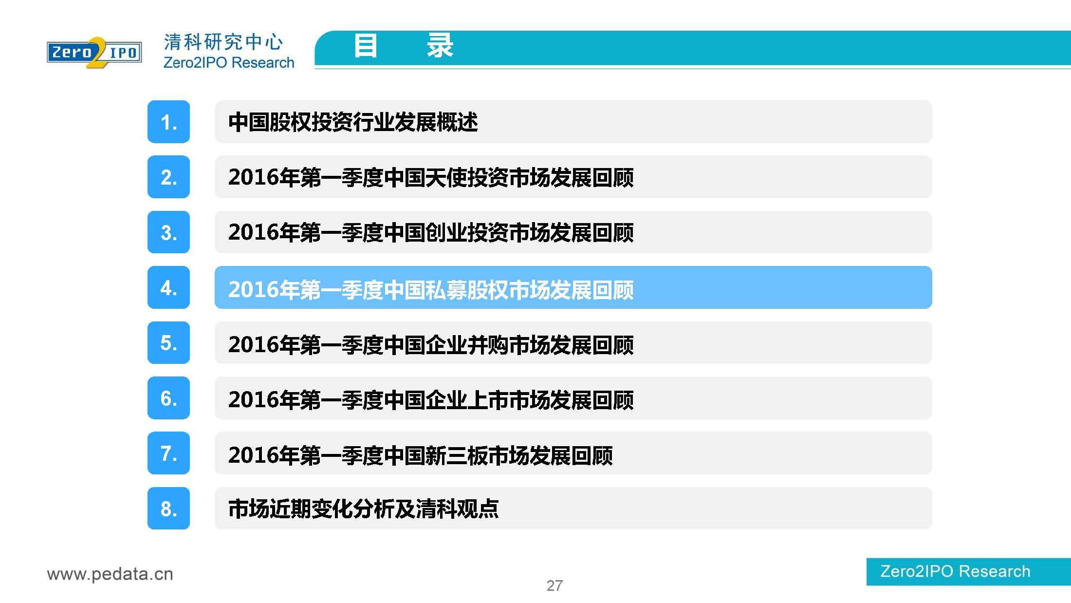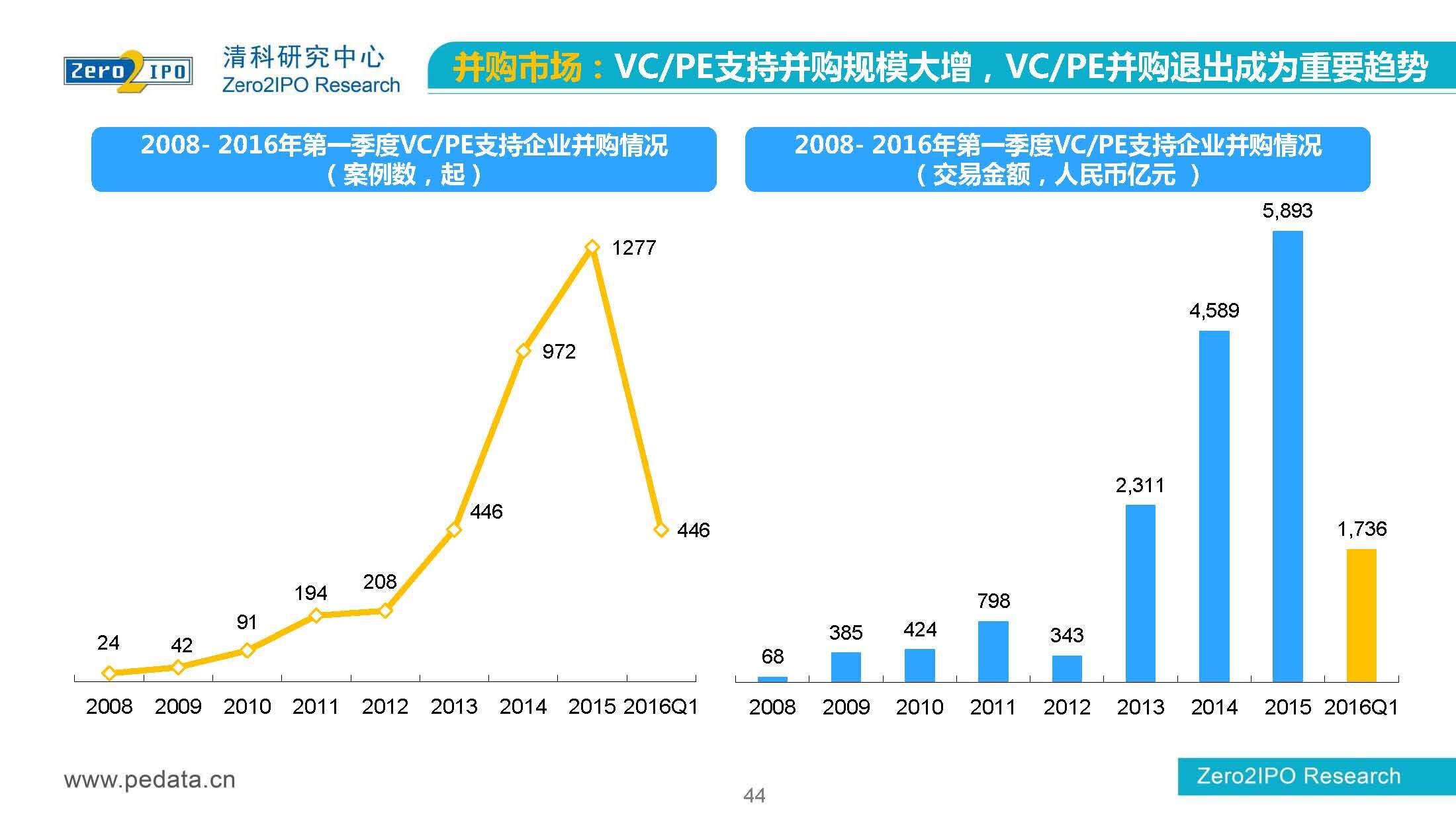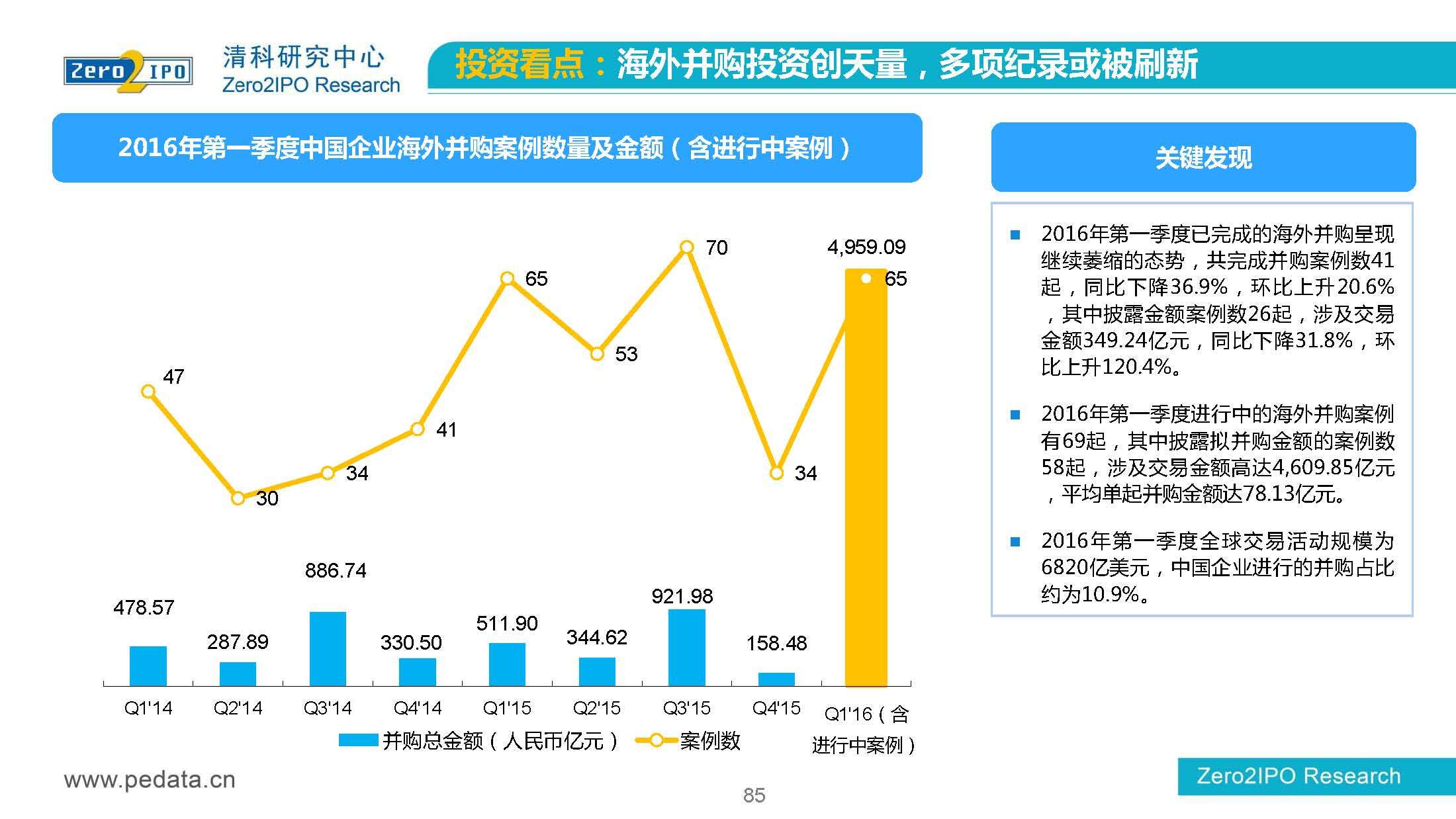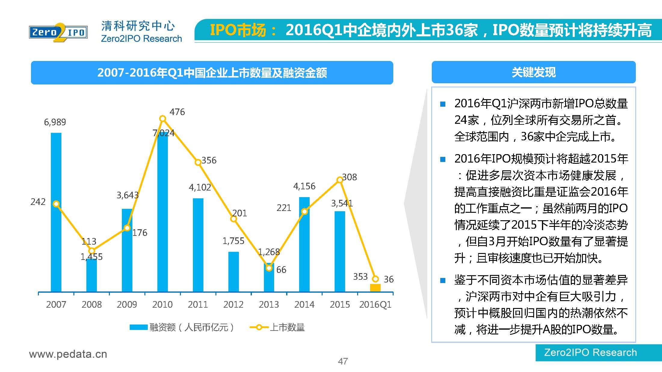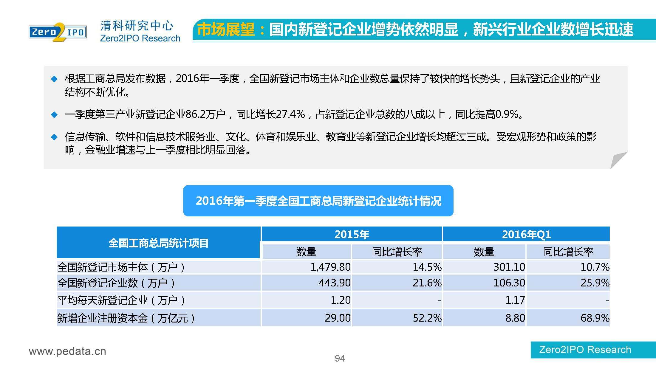 清科研究中心:2016年Q1中国股权投资市场回顾报告 根据清科集团旗下私募通统计显示,2016年第一季度股权投资市场募资总额约2,000亿元;股权投资市场投资总额约1,500亿元;中国股权投资行业走过20多个年头,市场管理资本量超5万亿,活跃机构超万家,中国新一轮股权投资时代到来 更多阅读:清科研究中心:2014年上半年中国股权投资市场回顾清科研究中心:2020年Q1中国股权投资市场回顾与展望清科研究中心:2019年中国股权投资市场回顾与展望清科研究中心:2022年上半年中国股权投资市场研究报告清科研究中心:2019股权投资金额下滑29.3%清科研究中心:2014年该13家众筹平台共发生融资事件9,088起 募集总金额13.81亿元人民币清科研究中心:2015年4月VC/PE市场募资金额16.84亿美元清科研究中心:2014年中国私募股权投资年度研究清科研究中心:2019年中国VC/PE项目退出收益研究清科研究中心:2017年投贷联动研究清科研究中心:2016年10月新三板统计报告清科研究中心:2016年上半年共有82家中国企业融资638.74亿元人民币清科研究中心:2016年6月中外创业投资及私募股权投资机构共募集金额54.84亿美元清科研究中心:2016年6月共发生投资案例312起 总投资金额达101.25亿美元清科研究中心:2015年7月VC/PE市场募资金额38.86亿美元