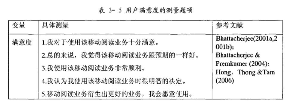 比如引用的论文中,认为用户对移动阅读产品的使用满意度会影响用户持续使用移动阅读产品,查阅了之前研究者关于满意度的问卷设计方法之后,结合移动阅读产品的实际特点,为上面这个假设提出了五个问项来测试。