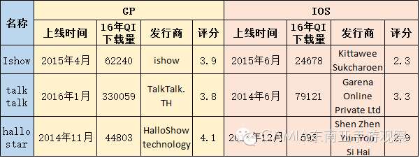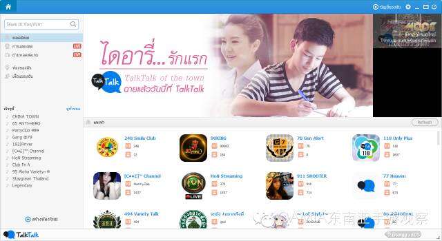 目前,在泰国市场上有3个主要的视频直播平台:Talktalk、以及在上期文章中提到过的的hallostar和ishow。