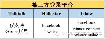 TalkTalk仅仅凭借Garena这一先天优势已足以。而Ishow似乎战略上和Hallostar有所不同,除了接入Facebook这一国民级平台,还接入泰国又一大游戏发行商winner online作为登录平台。