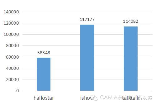 2016年Q1,后来者Ishow的月平均访问量最高,约为hallostar的2倍。比TalkTalk的流量也要稍高一点。