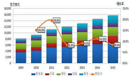 十二五时期,中国IT投资规模将达到1,600亿美元,IT投资的增长促进了数据中心市场的发展,数据中心的建设和升级反过来又将带动包括服务器、存储和基础设施等相关IT市场的增长。