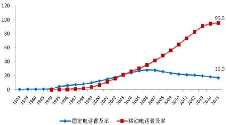 1、电信运营商传统主业已接近天花板,市场趋于饱和,不转型将面临巨大业绩下滑压力。工信部数据显示:2015年,我国移动电话用户普及率达95.5部/百人,其中有9个省市自治区的移动电话普及率突破100部/百人,北京更是高达188部/百人,存量博弈异常激烈;固定电话用户数连降9年,普及率已经降至16.9部/百人。