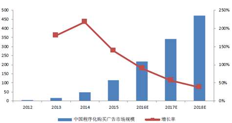 2012-2018年中国程序化广告购买市场规模(单位:亿元)