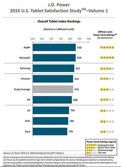 市场研究公司J.D. Power近日发布了2016美国平板电脑满意度调查报告,此次总共调查了3485名用户,调查在去年9月份到今年2月份之间完成。