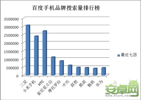 Android系统的智能手机越来越受到基友的青睐,Android系统版本的不断更新升级也为智能手机的使用提供了无限的空间。最近关注百度手机品牌排行榜,发现各品牌的智能手机搜索量都呈上升趋势,安卓网也从客户端的使用情况分析了Android系统用户的品牌分布,并具体到是哪一个品牌哪一个机型。