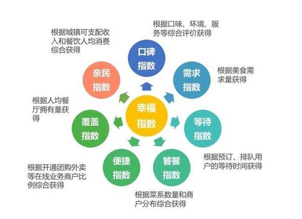 《2016中国吃货幸福指数大数据报告》由美团大众点评数据研究院选取2015年经济总量排名靠前的100个城市作为研究对象,根据口碑指数、需求指数、等待指数、饕餮指数、便捷指数、覆盖指数、亲民指数七大细分指标进行加权获得。