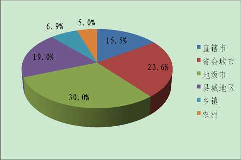 城市分布方面,地级市移动支付用户最多,占所有移动用户的30%;省会城市排名第二,占比为23.6%;县区地区列第三位,占比为19%;直辖市列第四位,占比为15.5%;乡镇和农村地区分列其后。