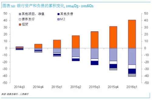 非银行金融机构有可能发挥关键作用的原因还包括,和绝大多数非金融私营实体相比,它们可以更好地参与银行间市场投资。银行间市场投资是一个将银行信贷循环回银行系统的重要渠道。如图12所示,在2014年7月至2016年3月间,银行的新增信贷与M2增量之间的资金缺口,主要是通过(i)发行债券,及(ii)其他非M2负债来填补的。鉴于非金融私营实体的业务性质,即使它们是部分债务的债权人,其潜在的交易很有可能是通过非银行金融机构桥接完成的。