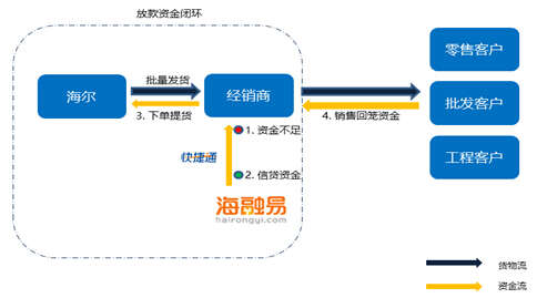 (1)海尔经销商资金不足,开通快捷通第三方支付账户,在线向海融易申请借款;