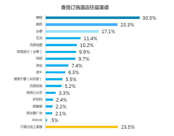 最后,传统渠道的旅游服务供应商向线上的发展也是在线旅游市场重要的构成,因此官方渠道也被纳入调研产品中。