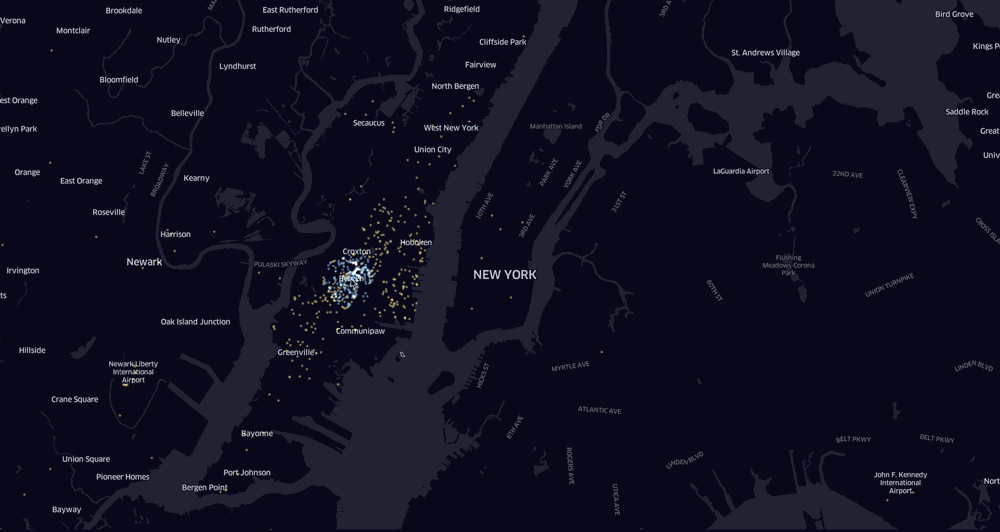 在给定半径区域内拖动鼠标将可以实时看到Uber的目的地分布情况