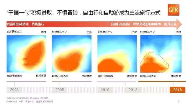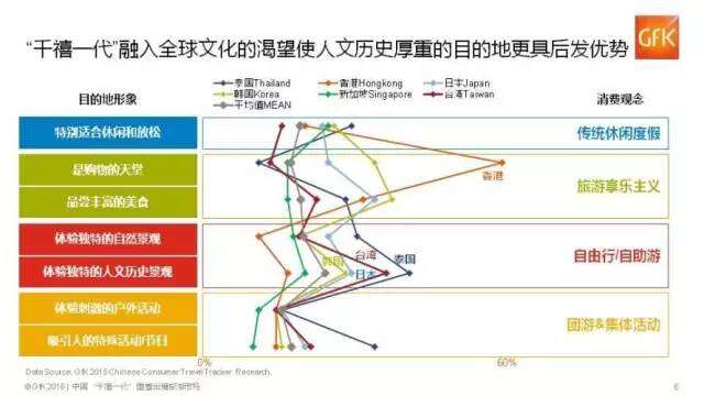 近15年间,中国消费者的价值观发生了翻天覆地的变化。在旅行中,团游和集体活动热情减退,自由行和自助游成为主流。中国 “千禧一代“融入全球文化的渴望是人文历史厚重的旅游目的地更具后发优势,日本台湾泰国跻身前位,仅购物资源丰富的香港不断下沉。