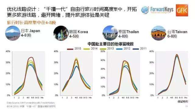 创新营销方式:“千禧一代”自由行趋向结伴而行,需注重社群建设,培养和引导优化线路设计:“千禧一代”自由行旅行时长高度集中(4-8晚),开拓更多旅游线路,避开拥堵,提升旅游体验是关键。