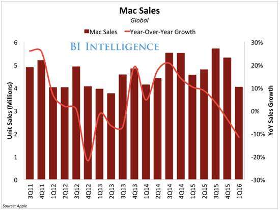 - Mac,夕阳产业,销量才百万起步,且面临全球PC业务缩水的窘境
