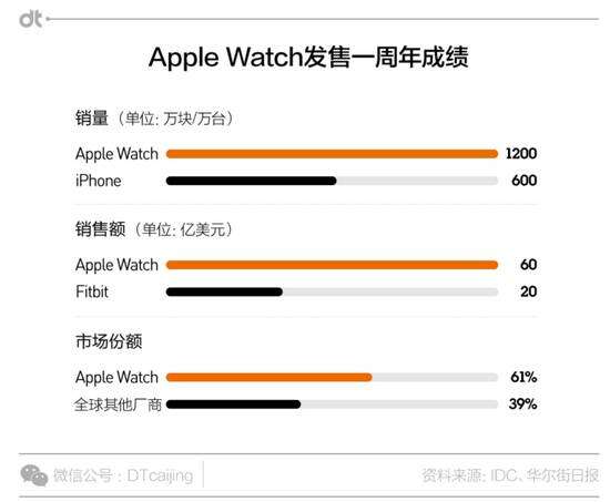 Apple Watch在过去一年中居然默默卖出了1200万块之多,结合每支约500美金的售价,总共为苹果捞回了60亿美金。
