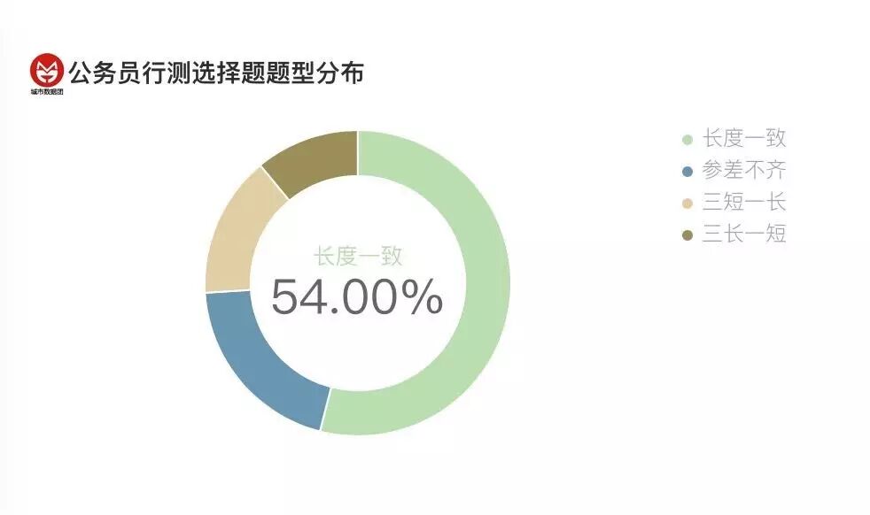 与高考英语形成鲜明对比的是,公务员行测中有多达54%的长度一致的题目,按照口诀还真是没法处理呢。