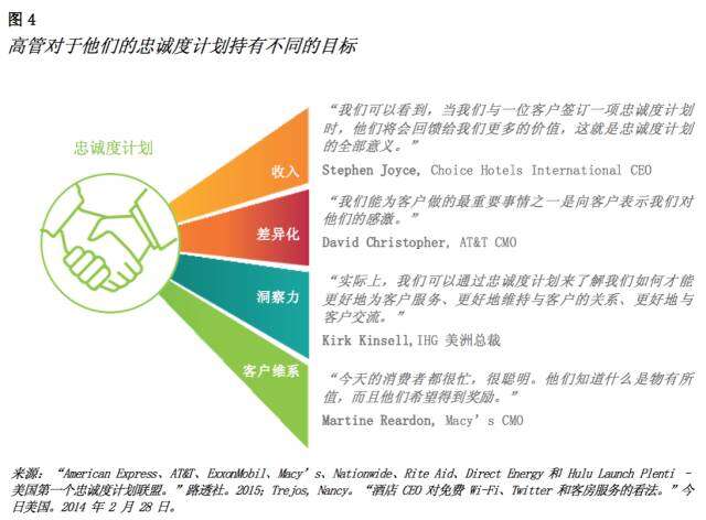 此外,根据旅游业和非旅游业高管对其其忠诚度计划目标的描述方式,很明显,他们希望这些计划能够提供多种服务职能。一些领导者将他们的计划作为提高收入的一种方式,而其他人认为他们的计划与客户维系有关。还有一些人认为忠诚度计划有助于将公司从其竞争对手当中区分开来(见图 4)。