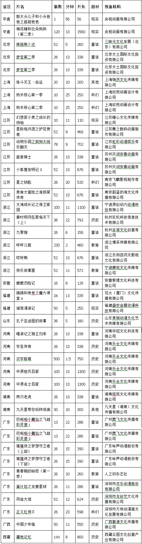 国家新闻出版广电总局关于2016年5月全国国产电视动画片制作备案公示的通知