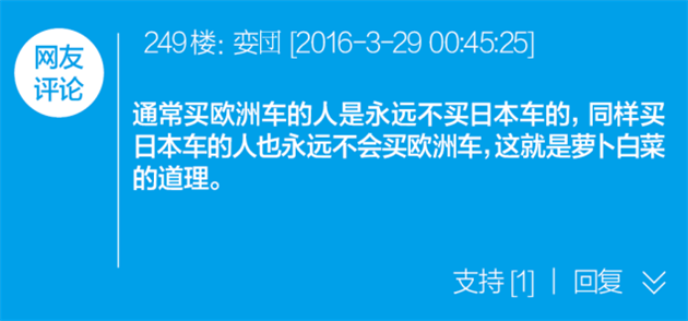 比如这位网友的评论就很能说明问题,类似的还有此前宝马车主画像中,那些看起来并不任性的高富帅们,通过购买某个品牌来表达自身价值取向,对中国车主来说绝对是一种潜意识的共同行为。