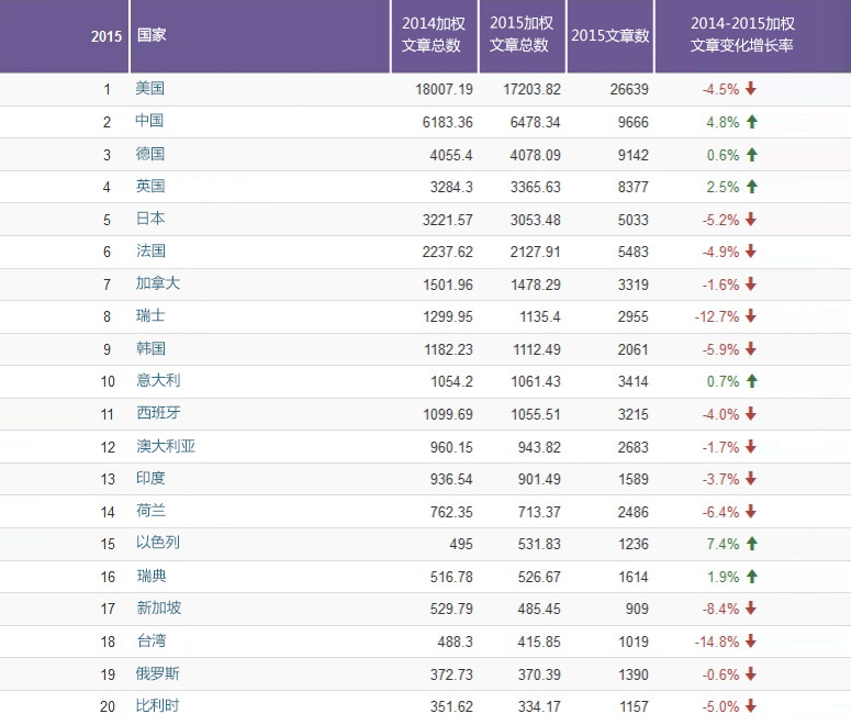 图片说明:Nature发布的2016自然指数排行榜(Nature Index 2016 Tables)显示,中国已成为全球发表高质量科学研究论文的第二大贡献国,仅次于美国;图片来源:guancha.cn;