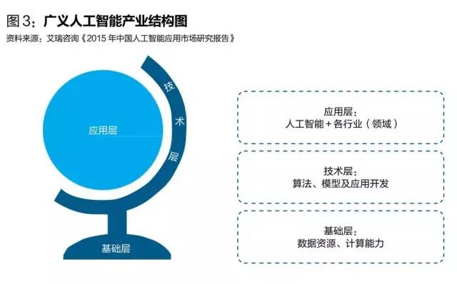 人工智能的产业结构可以分为三层:应用层、技术层和基础层。应用层聚焦在人工智能和各行业各领域的结合;技术层是算法、模型和技术开发;基础层则是计算能力和数据资源。