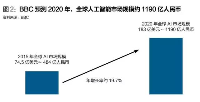 人工智能快速进入大众视野,源于今年3月谷歌围棋人工智能程序AlphaGo战胜世界冠军李世石。人机围棋对弈只是普及人工智能的一个秀。它的背后是规模千亿级的人工智能产业市场。BBC预测,2020年全球人工智能市场规模将达1190亿元人民币。