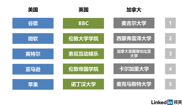 - 实战人才与研究人才并举:在全球VR人才最集中的三个国家中,美国的VR人才在全球独树一帜,他们多在谷歌、微软、英特尔等大型IT巨头企业工作,利用这些企业雄厚的研发资金和多元化的业务优势开展VR研发和基于商用及消费端的VR商业化。值得注意的是,英国、加拿大却多以学术研究型人才居多,大多集中在高等院校和研究机构,主导VR科技的基础研究和创新。