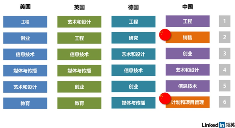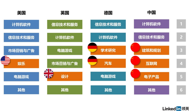图:当前美、英、德、中四个国家VR人才所属行业对比