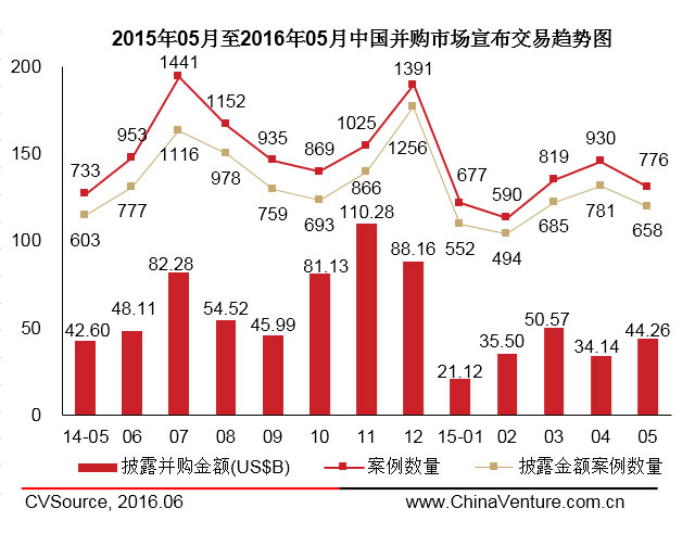 图1 2015年05月至2016年05月中国并购市场宣布交易趋势图