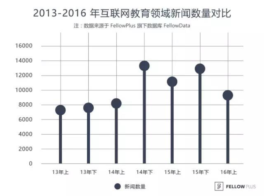 随着创投数据的增长,直到 2014 年,教育培训行业的媒体热度处于持续增长且基本趋于稳定的态势,虽然从 2015 年下半年开始,创投数据急剧下降,但是媒体的关注度却没有明显的下降趋势。