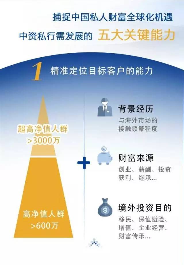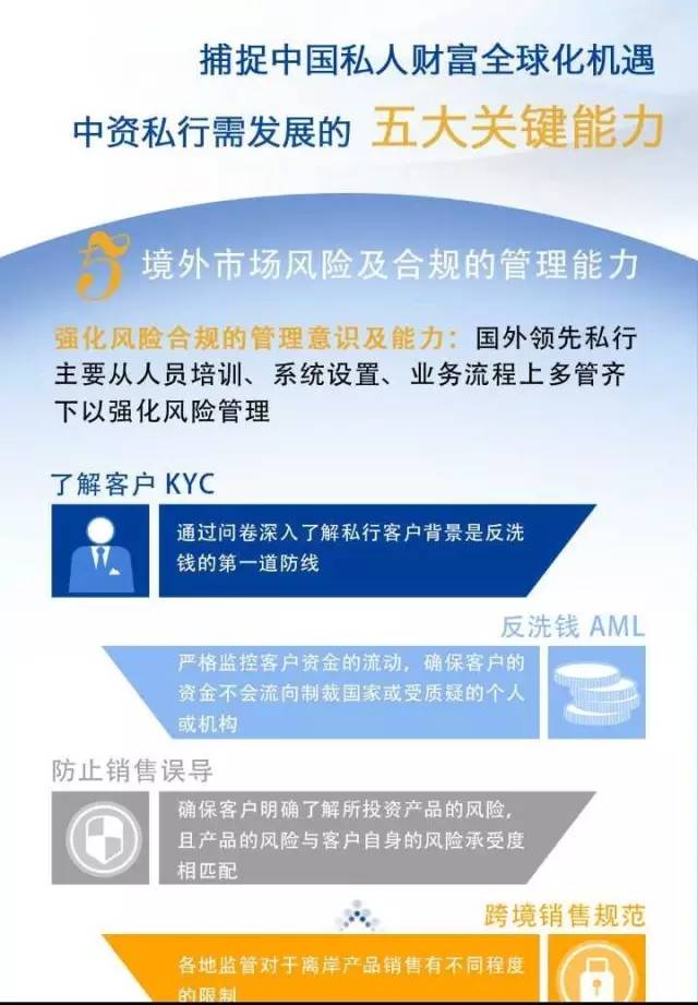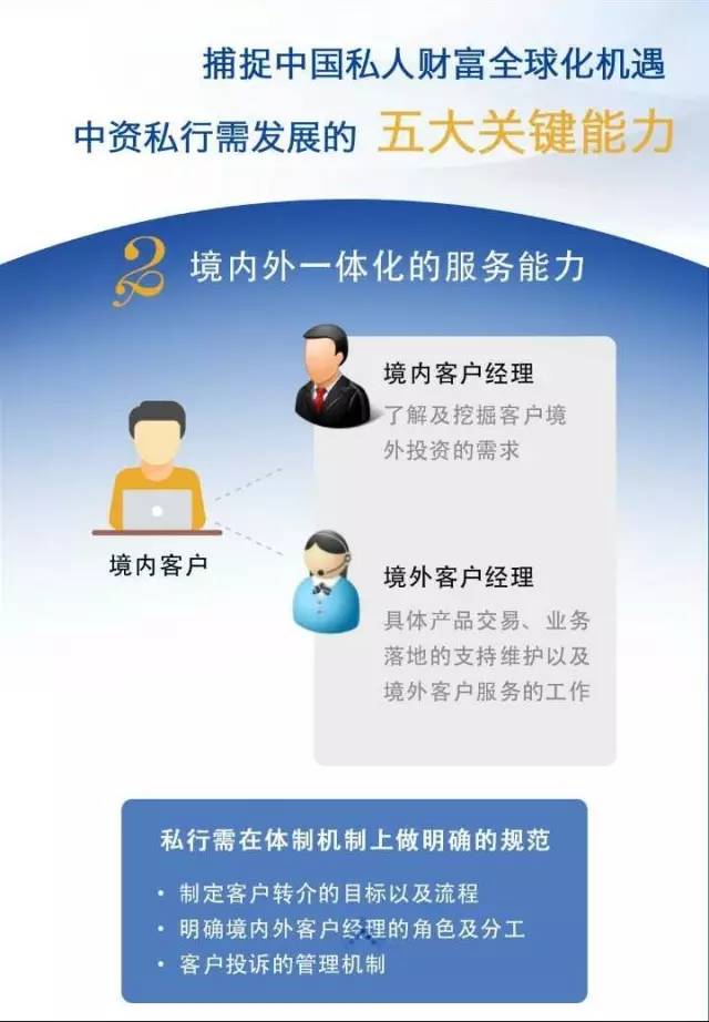 报告建议,为捕捉中国个人财富全球化机遇,中资私人银行应积极拓展五大关键能力,如精准定位目标客户、境内外一体化服务、专业投顾引领销售、筛选管理外部产品、以及境外市场风险与合规管理等。