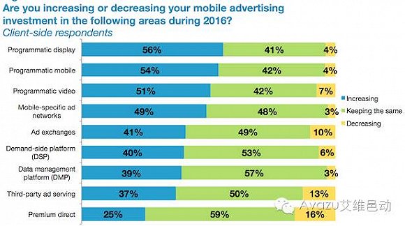 那些对桌面程序化广告优势已经有所了解的广告主们,现在正受益于数据驱动的移动端或是更加具有针对性的方案。超过一半(54%)的受访广告主表示将增加他们今年在移动程序化上的预算。