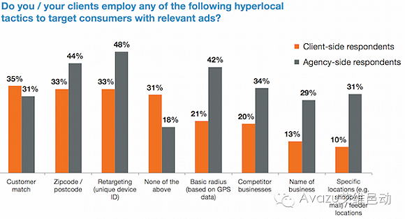 最受欢迎的策略(客户匹配)被35%的广告商使用。调查中使用率最低的策略是特定位置,如商场,这一项的使用率仅为10%。