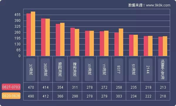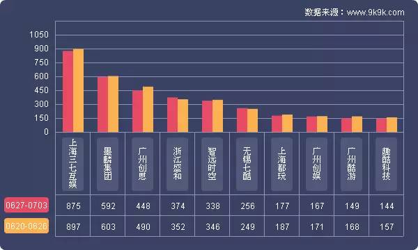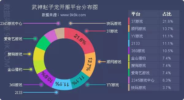 点评:《武神赵子龙》本周开服趋势相对稳定,其在37游戏开服占比减少2%,新增分布占比平台快玩游戏。