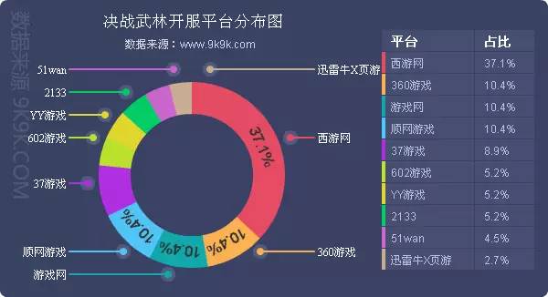 点评:本周《决战武林》开服保持稳定,西游网调整其日均开服频率为21服/天,开服占比37.1%。新增分布占比平台51wan,开服频率稳定在3服/天。