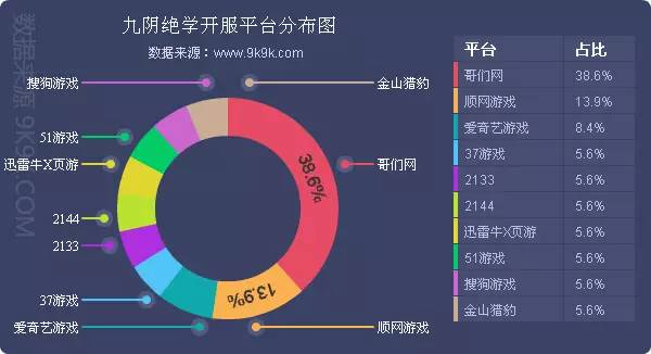 点评:本周《九阴绝学》开服趋势稳定,新增分布占比平台金山猎豹。