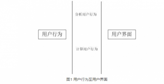 关于这个问题,Clark是这么理解的:在设计APP界面时,设计师需要充分了解目标用户的自然行为,并按照最符合目标用户原有习惯的方式进行设计;Clark这句话其实涉及到用户行为(Behavior)至用户界面(UI)的两个过程:分析用户行为(充分了解用户行为)、计算用户行为,并将计算结果体现到用户界面上(按照最符合目标用户原有习惯进行设计)见图1。
