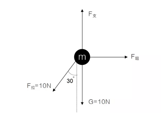 解题分析:通过F拉的分解以及与G的合成,凭借“动态平衡”条件约束,最终可以轻松地算出F支、F阻是分别是多少。