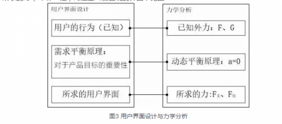 用户的已知行为对应已知外力(F拉、G);“动态平衡”对应用户行为对于产品目标的重要性;所求的力(F支、F阻)对应最终要呈现的界面,见图3