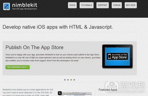 幸运的是,我发现了Objective-C代码框架——除非你是位很杰出的程序员,否则我建议你放弃学习Objective-C,采取和我一样的策略。在这之中,NimbleKit尤其出色。苹果网站的Development Tools版块强烈推荐这一工具,其中包含很多预先编写的Objective-C原生界面组件和行为调用(游戏邦注:最新Android版NimbleKit也包含相同内容)。